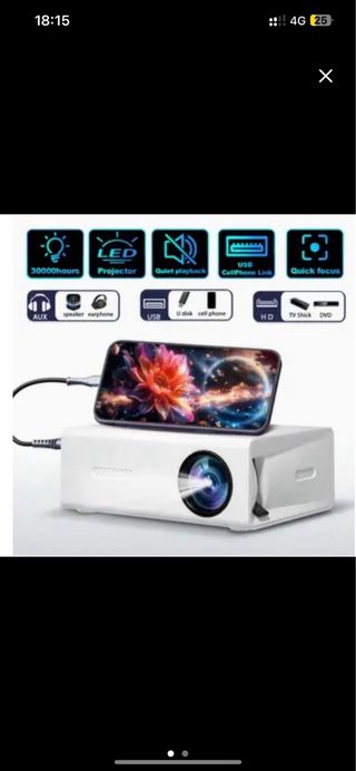 NUEVA SIN ESTRENAR. IDEAL PARA REGALO. Proyector portátil con aplicación integrada y alta resolución. - Full HD 1080P con 350 ANSI. - Compatible con Bluetooth. - Corrección trapezoidal automática y 4P. - Compatible con iOS, Android y HDMI.