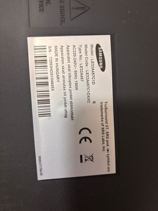 Televisor Samsung de 23 pulgadas. Funciona perfectamente pero no reproduce la TV. Creo que es porque no soporta la emisión HD de los canales, pero puede servir como radio, para consolas, como monitor de PC... Se aceptan cambios y negociaciones de precio.