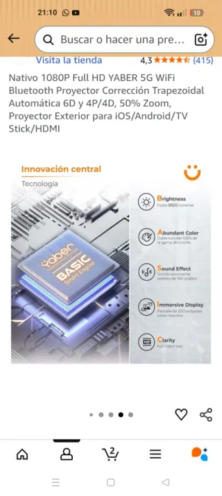 Proyector Yaber Pro V7 1080P sin estrenar. Disfruta de una experiencia de cine en casa. - Resolución Full HD 1080P. - Diseño elegante y compacto.