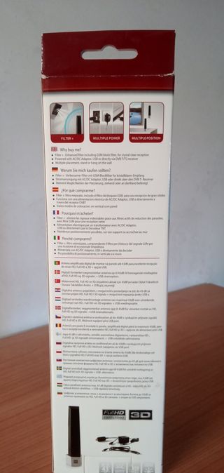 NUEVA EN SU CAJA. One for All SV 9345 - Antena de interior Full HD (USB), Negro
