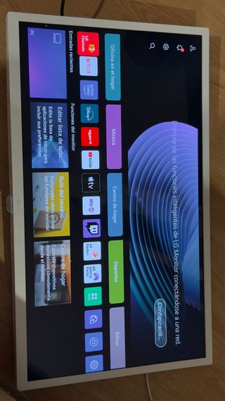 Monitor LG 32SR50F-W Smart Monitor 32" IPS Full HD. Tiene unas pequeñas rallitas superficiales que no afecta en nada y con la pantalla encendida no se ve apenas. El único con el que disfrutar de más contenidos en streaming como: RTVE, Mitele, Orange, Netflix, Prime Video, Disney+, Apple TV , YouTube, videojuegos y mucho más. Smart TV WebOS23, más fácil, intuitivo y seguro. Crea perfiles por usuario y controla todos tus contenidos a través de tus periféricos y/o mando a distancia. Magic Remote opcional Comparte fácilmente contenido o música desde tu dispositivo inteligente con AirPlay 2* , Screen Share o Bluetooth.