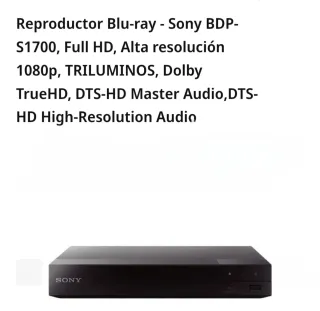 Reproductor Blu-ray Sony BDP-S1700 con resolución Full HD. - Compatible con TRILUMINOS. - Soporta Dolby TrueHD. - Incluye DTS-HD Master Audio y DTS-HD High-Resolution Audio.