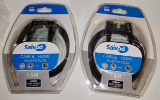 Se venden dos cables HDMI de la marca Saivod, cada uno de 1.5 metros de longitud. Son ideales para conectar dispositivos. - Conexión HDMI macho a macho. - Alta velocidad con Ethernet. - Compatibles con HD TV.