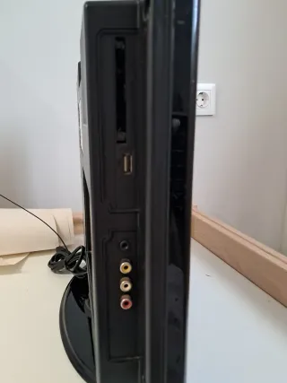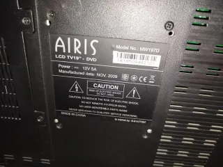 Televisor Airis con reproductor de DVD integrado. Ideal para habitaciones o espacios pequeños. - Pantalla HD. - Puerto DVI. - Puerto HDMI. - Puerto USB - Euroconector. - Puerto VGA. - Puerto RCA. Tiene cable de alimentación pero no tiene mando.