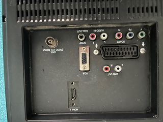 - Televisor FULL HD 1080p de 23 pulgadas - Defectos: Una raya negra vertical en la pantalla y el mando a distancia algo roto, algunas teclas (encender/apagar, OK central) no funcionan - 2 entradas HDMI y 1 USB - Panel lateral con botones de encender/apagar, cambiar programa y volumen - Medidas totales: 55 cm ancho x 46 cm alto x 16 cm fondo