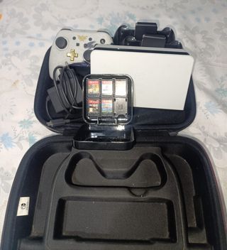 Oportunidad! Pack Nintendo Switch OLED + Mando Zelda + 256GB + 5 Juegos. Consola en muy buen estado. Pantalla increíble. Incluye: Consola OLED: Funciona perfecto (Nota: Joy-Con derecho a veces se desconecta en modo portátil, pero va perfecto por separado o en TV). Mando Pro Edición Zelda: Tears of the Kingdom (Original). MicroSD SanDisk 256GB: Edición especial Super Mario. 5 Juegos Físicos: Se entregan los cartuchos en estuche protector (sin carátula). Extras: Funda rígida, Dock blanco, HDMI y cargador original. Precio ajustado por el detalle del Joy-Con. Ideal para regalo. No cambios.- Precio negociable.
