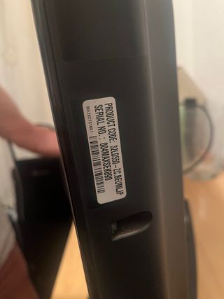 tv comprado en 2022 barriendo se golpeo con la escoba en un lateral donde marca la flecha y al encender se ve negro con una estrella de luz donde la señal, esta practicamente nuevo, con su caja accesorios mando ... para reparar, se presupone por llamada telefonica a servicio técnico rotura panel Lcd, pantalla exterior sin la más mínima marca. televisor tele peana pantalla