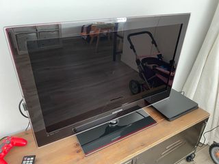 Televisor Samsung de 32 pulgadas. En buen estado, pero tiene unos arañazos superficiales en el cristal y marco, hecho con algún lápiz por niños. El mando funciona correctamente pero la pestaña de la tapa de acceso a las pilas está rota, no genera ningún problema. Para más detalles de las especificaciones hay una foto con el modelo exacto y se puede buscar en internet.