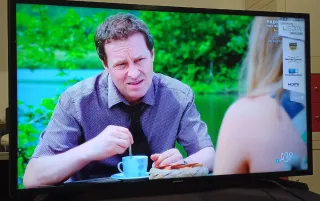 Televisión LED de 40 pulgadas. - Pantalla de alta definición. - Diseño moderno y elegante. - Pequeño corte superior derecha, no afecta a la imagen y tampoco se nota estéticamente. - No smart TV, pero tiene 3 puertos HDMI, USB, etc.
