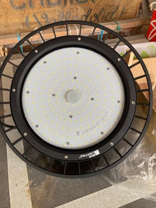 Campana de iluminación LED de alta potencia. - Modelo: 235 MM 2835 28B6C 168LED - Referencia: REF:190803 - Potencia: 150W - Tipo de LED: SMD - Temperatura de color: 5000K - Certificación: CE ROHS - Fecha de fabricación: 08-2018