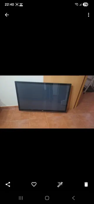 Televisor LG de 42 pulgadas en color negro con aparato de TDT. Nose si funciona bien la tele hace tiempo que no la enciendo. Pero va perfecta para jugar a juegos de la play, wii.... - Tiene 20 años. - Pesa mucho y se tiene que venir a buscar personalmente no envío.
