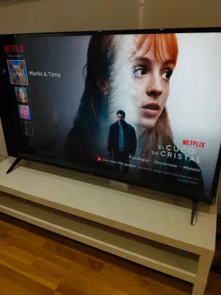 Televisor LG de 43 pulgadas con tecnología Smart TV. - Pantalla de 43 pulgadas. - Funcionalidad Smart TV. - La pantalla tiene un ligero tono azulado y algunas pequeñas rayaduras apenas visibles, pero funciona perfectamente