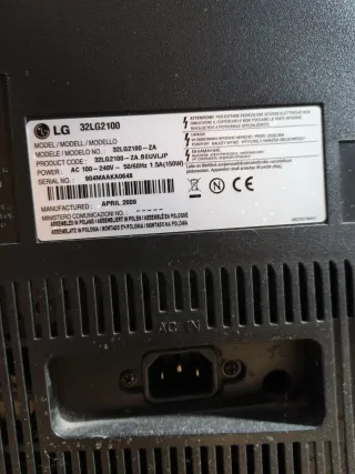 Televisor LG de 32 pulgadas, modelo 32LG2100. - Fabricado en abril de 2009. - Modelo 32LG2100-ZA.BEUVLJP. - Alimentación: AC 100-240V~50/60Hz 1.5A (150W). - En perfecto estado - Mando incluido