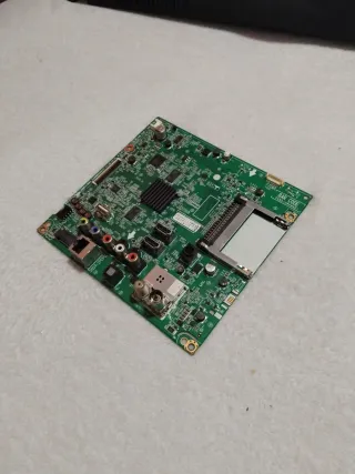Placa base principal de repuesto para televisores LG. Componente electrónico esencial para el funcionamiento del televisor. - Diseñada para modelos LG. - Color verde con detalles plateados.