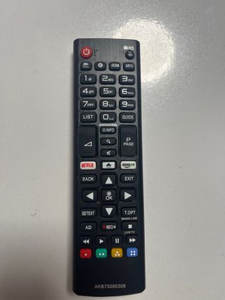Mando a distancia compatible televisores LG y smart LG - Modelo AKB75095308. - Botones de acceso directo a Netflix y Amazon. - Incluye botones de navegación y numéricos.