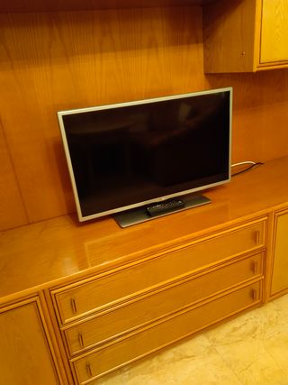 Televisión de 32 pulgadas en color plateada mate. Mando a distancia universal. En perfecto estado.