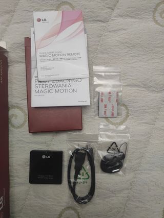 Televisión LG en color negro. - Incluye mando a distancia. - Base para colocar la televisión. - Cable de alimentación.