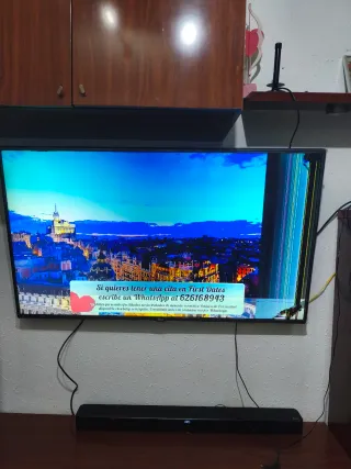 Vendo este televisor LG en muy buen estado + soporte de pared. Tiene una raya fina en el medio (no molesta para ver cualquier cosa pero se aprecia)