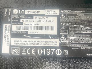 Piezas de repuesto para TV LG modelo 32LH604V. - Componentes internos y externos disponibles. - Procedente de TV con pantalla rota. preguntar disponibilidad y precio pieza