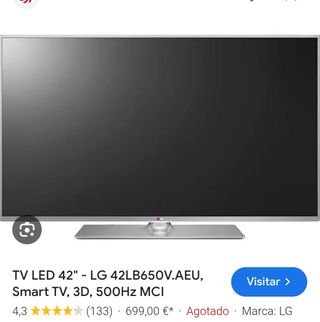Televisión LG 42LB650V, Smart TV con tecnología 3D. Se encuentra en perfecto estado. Gafas 3D incluidas - Tamaño de pantalla: 42 pulgadas - Resolución: 500Hz MCI - Funciones Smart TV y 3D