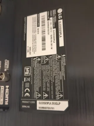 Televisor LG OLED de 55 pulgadas con resolución 4K UHD y Smart TV. - Modelo: OLED55E9PLA - Fabricado en: 08/2019 - Montado en Polonia - Potencia: AC 100-240 V~50/60 Hz 361 W - Código de producto: OLED55E9PLA.DEUQLJP - Número de serie: 908MABTD3781 Para reparar o piezas, pantalla bien, estéticamente muy bien,no preguntar avería,se desconoce,solo recogida.