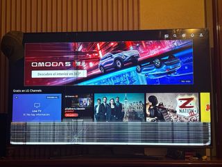 Televisor LG con pantalla negra. - Sistema operativo webOS. - Acceso a aplicaciones como Netflix, YouTube y Prime Video. - Incluye LG Channels para contenido gratuito.