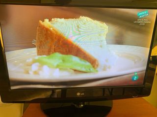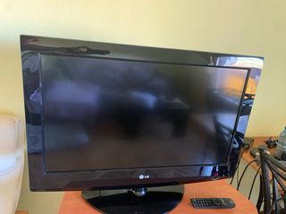 Televisor LG en color negro. Funciona perfectamente. - Pantalla plana. - Diseño moderno. Lo único tiene dos mandos uno para andar con la tele i el otro funciona igual pero ba mejor para apagar la tele i el pequeño para subir i bajar Como mucho bajo a 35€