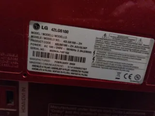 Televisor LG en color rojo. Falla, a veces enciende, otras veces no enciende, se apaga sola. Sin mando. Sólo recogida - Pantalla plana. - Diseño moderno.