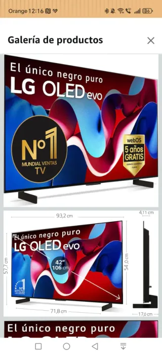 TV de 42" Función especialAMD FreeSync La verdadera experiencia OLED, solo te la dan los creadores del único negro puro, ahora con el único blanco puro Ahora, un 50% más brillante. Sumérgete en cada escena con la mejor calidad de imagen Dolby Vision y el mejor sonido envolvente Dolby Atmos. Smart TV webOS 25 que evoluciona a mejor cada año renovándose en tu TV e incorporando las nuevas funciones de la IA