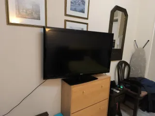 Televisor LG de 32" en buen estado de conversación. No es Smart TV, pero se puede convertir fácilmente en Smart conectando un dispositivo externo por HDMI (Chromecast, Fire Stick, Android TV, etc.). Incluye mando original. Buena calidad de imagen y sonido. Ideal para dormitorio o segunda vivienda. Medidas aproximadas: 76 x 50 cm (con peana).