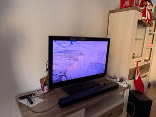 Televisor Samsung en buen estado, listo para usar. - Pantalla de 40 pulgadas. - Diseño elegante en color negro y beige.