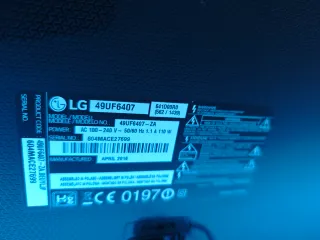 Televisor LG modelo 49UF6407. - Precio negociable - Modelo: 49UF6407-ZA - Alimentación: AC 100-240 V~50/60 Hz 1.1 A 110 W - Número de serie: 604MACE27699 - Fabricado en: Abril 2016 - Ensamblado en Polonia.