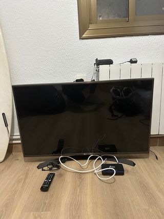 Televisión LG de 43 pulgadas. - Pantalla plana. - Diseño moderno. Le falta el cable para enchufarla y se sube un poco el color por lo demás va perfecta. Tiene también el aparato con el que se puede ver cualquier aplicación, Netflix, YouTube etc.