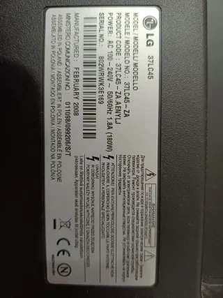 Televisión LCD LG de 37 pulgadas en color negro. Un televisor con un diseño moderno y elegante. Tiene mando pero no está en muy buen estado, pero funciona. - Pantalla de 37 pulgadas. - Color negro.