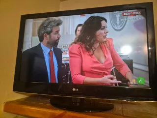Televisor LG de 42 pulgadas. Es un televisor elegante y de diseño estilizado. Medidas: 112 x 72cm Se ven los canales con TDT (incluye). Al encenderse tiene una mancha con granitos que luego va disminuyendo. -Mando incluye - Pantalla 42 pulgadas. - Color negro brillante. - Opción de grabar. - Se puede retroceder el programa en directo.