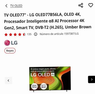 Se rebaja de 625€ a 600€ último precio. No Negociable Televisor LG OLED de 55 pulgadas con resolución 4K. LG OLED55B46LA, modelo de 2024, se vende por cambiar a un modelo de 65", comprada en septiembre de 2025, con factura y tres años de garantía, Dimensiones del embalaje 136x81x18cm. NO NEGOCIABLE / iPhone 16 - Pantalla OLED. - Procesador 4K con IA a8 - Sonido IA - SDR/HDR - Magic Remote Control - webOS 24 - Salida de audio 20W - 4 Salidas HDMI