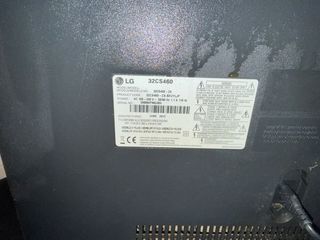 Televisión LG en color negro y gris. 32” -Sí funciona -Diseño moderno y elegante. -No tiene mando. -Necesita adaptador LG 19v