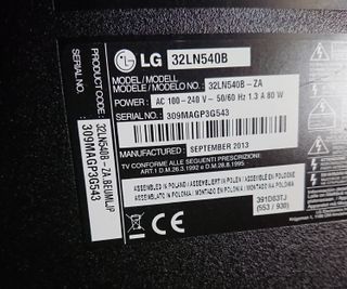 Televisor LG, modelo 32LN540B. Piezas repuesto. Retiradas de un TV con pantalla rota.