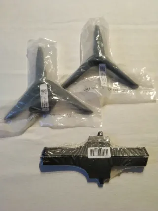 Lote de soportes para televisores Samsung y LG. Incluye varias bases y piezas de montaje. - Bases de TV negras. - Piezas de sujeción. - Incluye tornillería y accesorios.