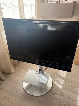 Televisor Loewe de 42 pulgadas. Está en perfecto estado pero necesita un sintonizador de TDT HD. - Marco en color gris y plateado. - Altavoces integrados en la parte frontal. - Base redonda. - Logo de la marca en la parte frontal inferior.