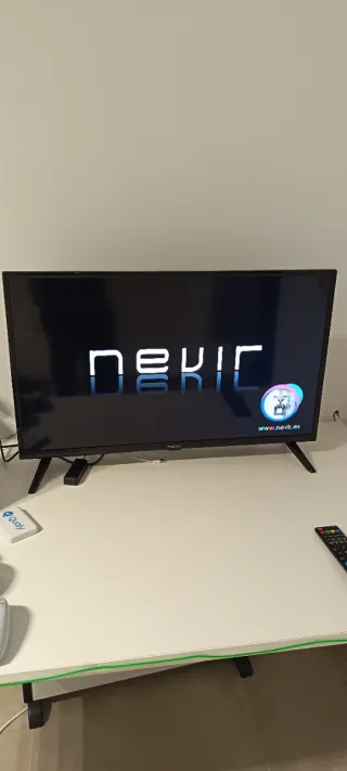 Televisor de la marca Nevir en color negro. - Pantalla plana. - Diseño moderno. 32 pulgadas, con smart TV, conectores HDMI, etc. Funciona correctamente, la vendo por coger una de mayor tamaño.