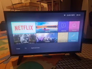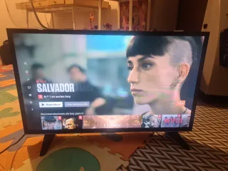 Televisor de 32 pulgadas con un diseño moderno. LEER BIEN Se puede ver la tv y Se puede enviar imágenes del móvil a la TV y ver Netflix. En otras APP me da un código de error que creo que es porque no pone la fecha bien, pero no lo se. De ahí el precio - Pantalla de 32 pulgadas. - Color negro.