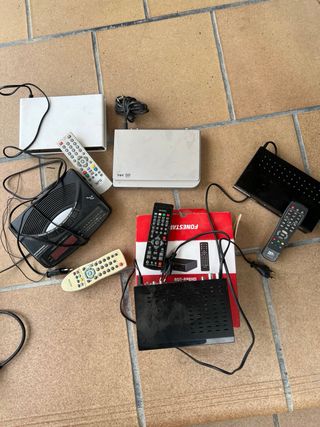 Conjunto de varios dispositivos TDT y un despertador. incluye lo que se ve en las fotografías creo que funciona todo, pero tampoco lo aseguro porque no voy a a probarlo o sea que que sin querer comprarlo que lo compre