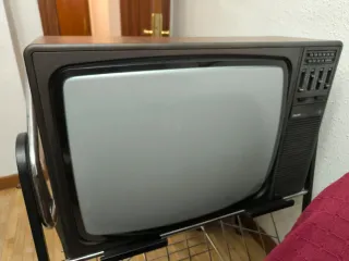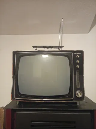 Televisor Philips original modelo Philetta 1014 de 14 pulgadas. Funciona correctamente, enciende sin problemas. Incluye caja original y manuales/documentación. Conexión por antena (VHF/UHF). Ideal para decoración vintage, coleccionistas o consolas retro antiguas. Estado general bueno para su edad. Recogida en persona.