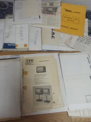 Lote de esquemas técnicos para televisores antiguos de varias marcas. - Esquemas de Philips. - Documentación de Sharp. - Manuales de ITT. - Información de Grundig. - Manual técnico Unic color Y muchos más hasta 80 diferentes