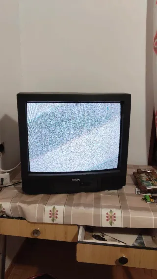 Televisor antiguo de la marca Philips con pantalla CRT. - Tamaño de pantalla: 14 pulgadas. - Diseño clásico en color negro. - Perfecto estado - Funciones en pantalla - No tiene mando a distancia - Se puede controlar todas las opciones desde los mandos del TV. - Solo tiene toma de antena - Ideal para consolas, ordenadores videos VHS, beta, 2000 retro. - Se puede utilizar mando universal - No negociable.