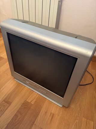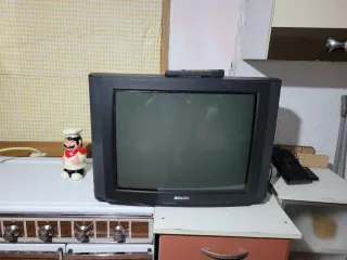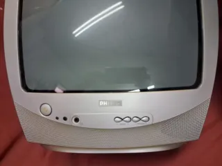 Televisor de tubo CRT Philips plano,con una calidad de imagen y nitidez poco vista en una 21",(y he visto muchas),las fotos no hacen justicia a lo real.Puedes probarla sin ningún problema,no lleva mando,pero tampoco vas a usarlo demasiado.No se ofrece garantía por ser un producto antiguo.Conectar por RGB para la mayor calidad de imagen.