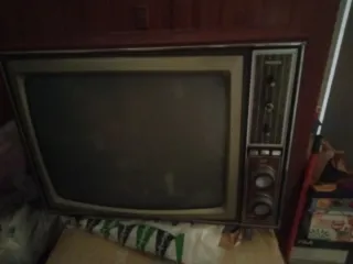 Televisión de estilo retro con un diseño clásico. - Pantalla de tubo. - Color gris. La hemos conectado y funciona. Muy grande: Ancho 78 Alto 77 Fondo 57 El día 20/03/26 la tiro a la basura.