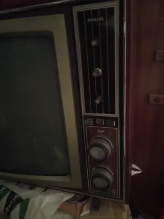 Televisor antiguo de tubo de la marca Philips, en buen estado de conservación.no ahy parpadeo en la imagen y el sonido perfecto dos altavoces delante - Modelo de sobremesa. - Color negro y gris. Con un TDT de ahora y un euroconector y a funcionar solo vale 18 euros el tdt.yo ya la e probado con el q tengo y perfecta la señal y sin parpadeo .es un televisor q ocupa mucho espacio ideal para casa de campo