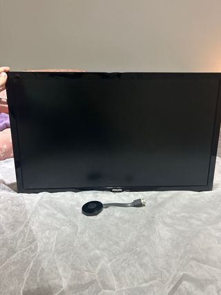 Televisor Philips de 28 pulgadas junto con un Google Chromecast conectado a internet con el que ver todos los canales de streaming. En perfecto estado. Se puede colgar de la pared o poner con patas. Se entrega con todos los accesorios, cables y tornillos. Usada como tv de dormitorio. - Pantalla de 28 pulgadas. - Incluye Google Chromecast para streaming.